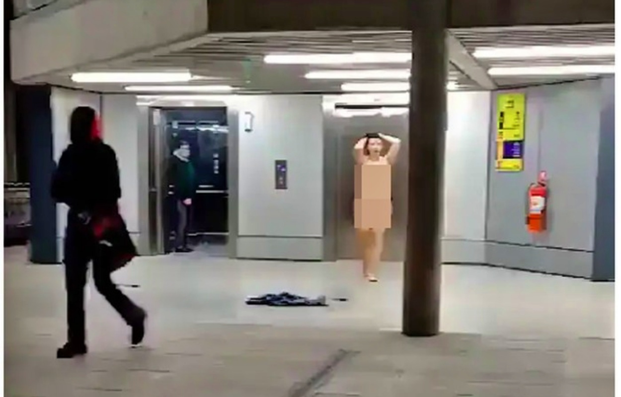 Tangkapan layar video Seorang Turis Wanita Telanjang dan berlarian di dalam Bandara