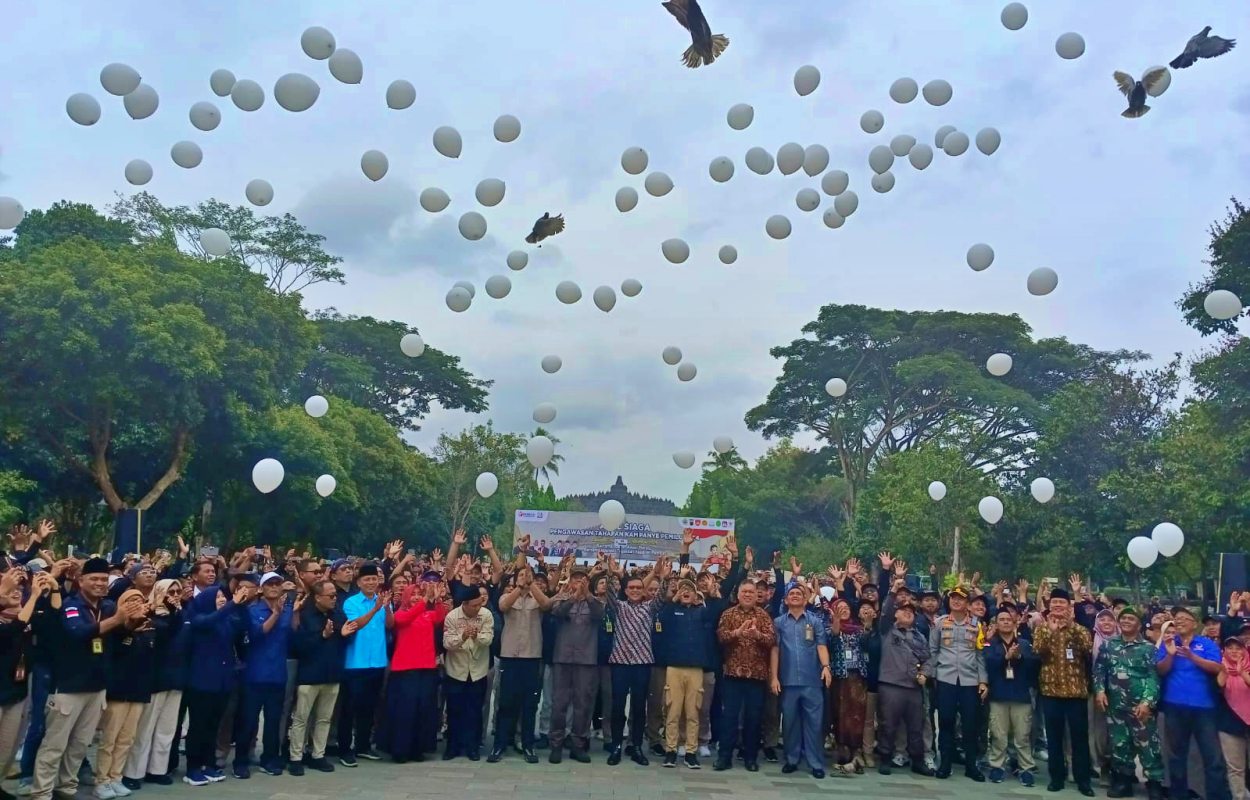 Apel Siaga Pengawan oleh Bawaslu Jateng di Candi Borobudur Magelang_foto Bayu Sapta Nugraha
