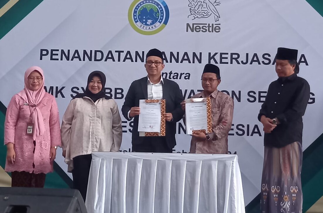BNews–MAGELANG– Sekolah Menengah Kejuruan ( SMK) Syubbanul Wathon Secang, Kecamatan Secang, Kabupaten Magelang melakukan kerja sama dengan PT Nestle Indonesia. Penandatangan kerja sama dilakukan Kepala SMK Syubbanul Wathon Secang, Muhammad Sholikhun dengan Direktur Human Recourses Nestle Indonesia, Fahrul Irvanto di sekolah setempat, Jumat (1/3/2024). Kepala SMK Syubbanul Wathon Secang, Muhammad Sholikhun mengungkap bahwa ada tiga […]